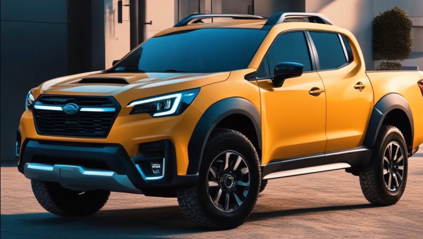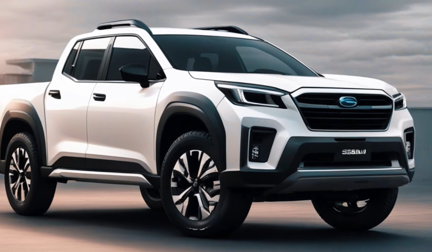 The front end would feature a hexagonal grille with chrome accents, LED headlights with C-shaped daytime running lights, fog lights, and an intercooler scoop on the hood that hints at its turbocharged potential. The side profile would showcase the contrasting black cladding on the wheel arches, lower doors, and rocker panels. The body-colored inlays on the cladding would add some flair to the design. The frameless windows would nod to the old Subarus, creating a sleeker appearance. The rear door cutline would be set behind the window glass to make a more seamless transition to the bed area.