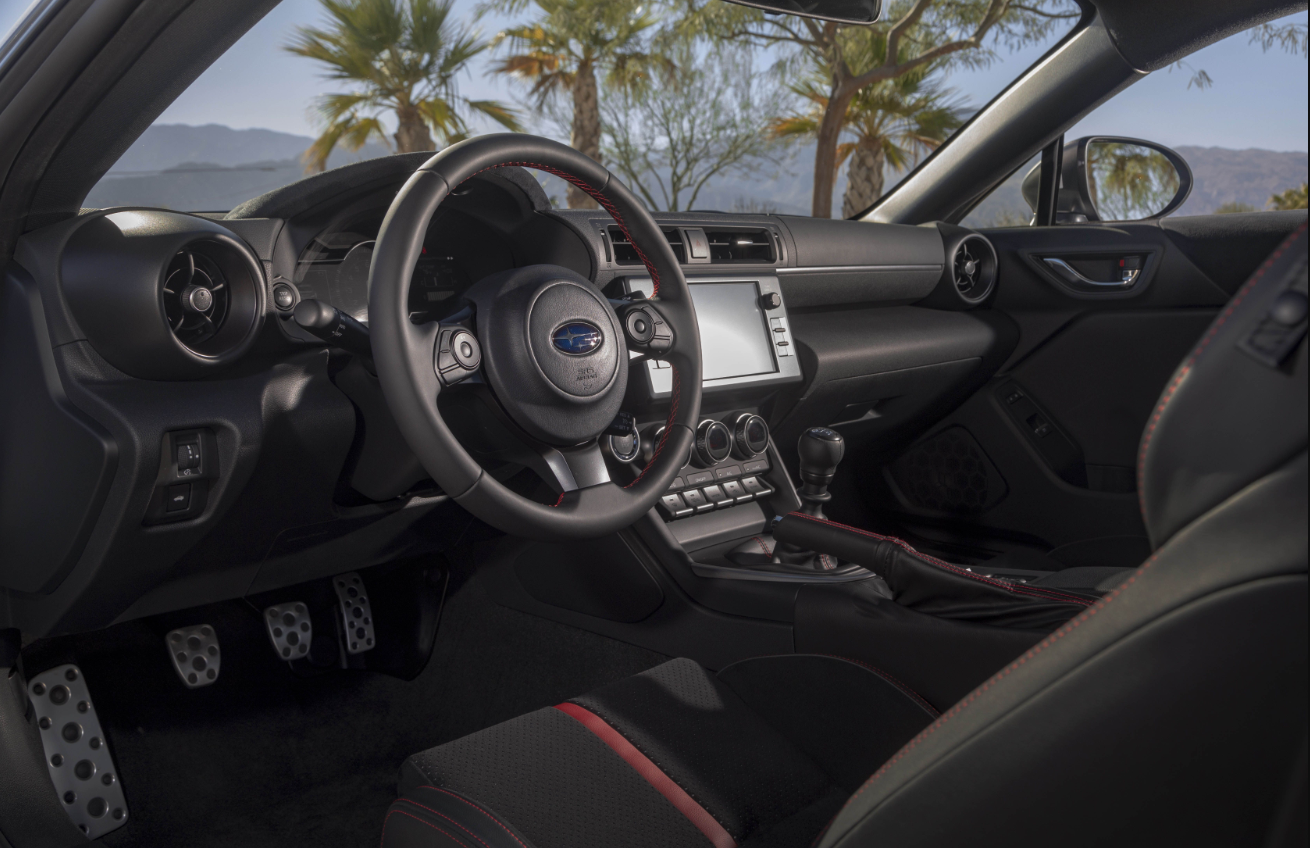 The interior of the 2025 Subaru BRZ is more modern and luxurious than before. The car has a more extensive infotainment system, a digital driver display, and new upholstery materials. Modern safety features on the vehicle also include adaptive cruise control, lane leaving warning, and blind-spot monitoring. The car also has a carbon-fiber central console with integrated shift LEDs. This dashboard-mounted race widget display shows car data, performance-oriented gauges, and bolstered seats with Alcantara material embossed with the BRZ logo.